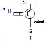 | Fig 30 shows a PNP transistor with the emitter lead connected to the power rail. The collector connects to a resistor called a LOAD RESISTOR and the other end connects to the 0v rail or "earth" or "ground." The input is the base and the output is the collector. |